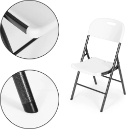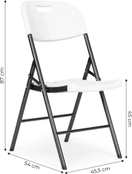 A porszórt bevonattal ellátott fém szerkezet és a csúszásgátló lábak biztosítják a tartósságot és biztonságot. Az összecsukható mechanizmus gyors szék összecsukást és szétnyitást tesz lehetővé.