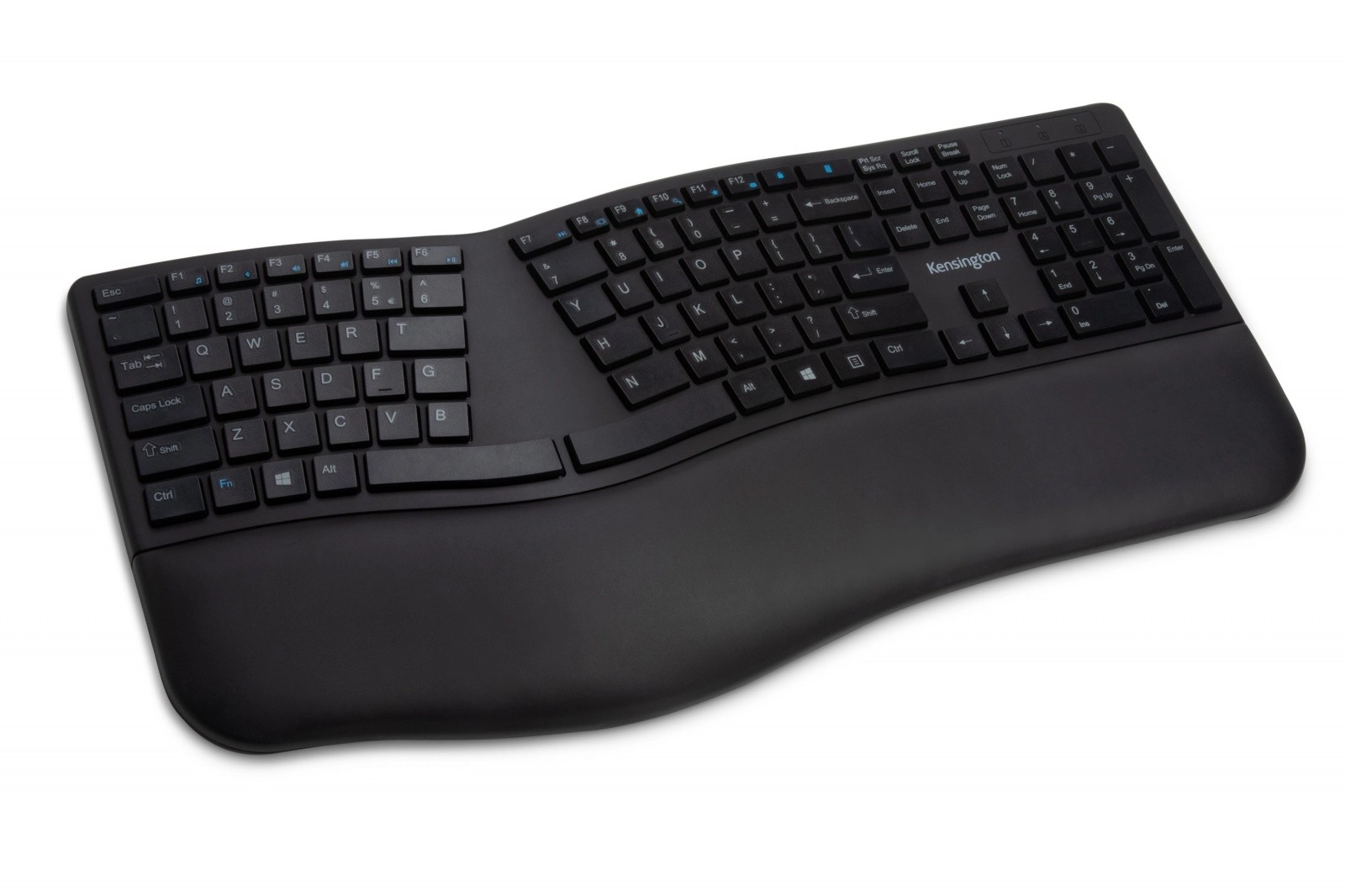 Ergonomikus vezeték nélküli billentyűzet úgy lett tervezve, hogy kényelmes kéztartást biztosítson a számítógépen végzett munka során. A megosztott és megfelelően döntött felület, az állítható dőlésszög és az integrált csuklótámasz természetes kézpozíciót garantál.