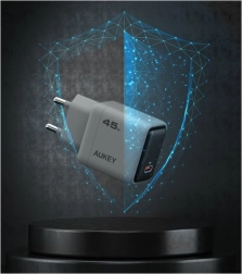 Az AUKEY 45W-os töltő Power Delivery 3.0 technológiával nagy sebességű töltést kínál a készülékek széles skálájához, beleértve a telefonokat és tableteket. A harmadik generációs GaN chipnek köszönhetően ez a töltő nemcsak biztonságos és energiatakarékos, hanem környezetbarát is.