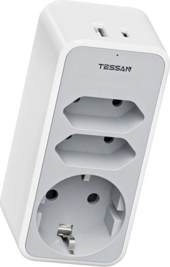 A Tessan fali aljzat ideális megoldás azok számára, akik a tágasságot, funkcionalitást és esztétikumot keresik. Kompakt méreteinek (5 x 4 x 10 cm) köszönhetően könnyen rendezheti a kábeleket és megőrzi a rendet. Az eszközön 5 aljzat található, beleértve a Schuko aljzatot, két EU aljzatot, illetve USB portokat, ami megkönnyíti különféle eszközök töltését egy helyen.