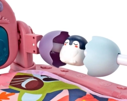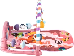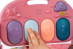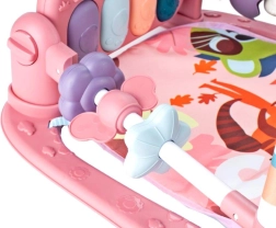 Ez a rózsaszín fejlesztő játszóalátét biztonságos és inspiráló teret teremt a mindennapi játékhoz. A színes ív függesztett játékokkal nyújtózkodásra és megfogásra ösztönzi a babát, erősítve a szem–kéz koordinációt. A háttérvilágítású billentyűkkel ellátott interaktív kis zongora 3 hangüzemmódot kínál – hangsorhangok Do–Re–Mi–Fa, rövid hangok (pl. gyermekkacaj) és hosszabb dallamok – ezzel támogatva a hallás és a ritmus fejlődését.