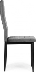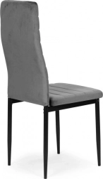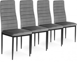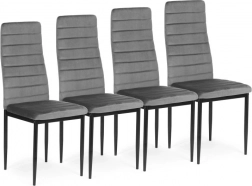 A négy kárpitozott szék szettje elegáns és modern elemet képvisel minden belső térben. Ezek a székek kiemelkedő kényelmet nyújtanak a formázott háttámlának és kiváló minőségű habszivacs töltetnek köszönhetően. Egyenes, fekete fém lábakkal vannak ellátva, a tökéletes stabilitás és modern dizájn érdekében.