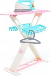 A készlet tartalmaz egy összecsukható vasalódeszkát, vasalót, 2 db szennyestartó kosarat és egy ruhafogast.