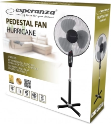 Élvezze a friss fuvallatot a ESPERANZA HURRICANE ventilátorral, amely modern megjelenésével bármely belső térbe könnyedén illeszkedik. A biztonságról a sűrű első és hátsó védőrács gondoskodik, amely „gyermekujj-teszten” is megfelelt. A stabil, kereszt alakú talp csúszásgátló végekkel hosszabb használat közben is szilárdan a helyén tartja a készüléket.