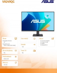 Az ASUS VA249QG egy keret nélküli kialakítással rendelkező monitor, amely modern megjelenést biztosít és minimalizálja a zavaró tényezőket több monitor használata közben. Az ASUS Eye Care technológia révén ez a monitor csökkenti a szemfáradtságot a Flicker-Free és Low Blue Light funkciókkal, ezért ideális a hosszútávú használatra.
