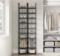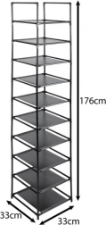 Az egyszerű, szerszám nélküli összeszerelés mindössze öt percet vesz igénybe, még a kevésbé gyakorlott felhasználóknak is. A tíz polccal rendelkező cipőtartó nagy tárolókapacitást kínál, akár tíz pár cipő számára.