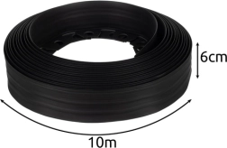 A terméket úgy tervezték, hogy bármely kerthez illeszkedjen a hossz könnyű alakíthatósága révén. A 6 cm-es magasság hatékonyan megakadályozza a fű és a gyökerek terjedését, így a kert rendezett és esztétikus marad. Elegáns fekete felülete harmonikusan illeszkedik a környező növényzethez.