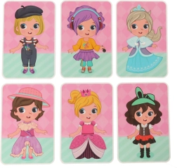 Gazdag készlet mágneses ruhákkal, frizurákkal és kiegészítőkkel, mintakártyákkal – több tucat öltözéket és jelenetet kínál. Kiváló a mintakövetéshez és a szabad alkotáshoz egyaránt.