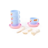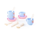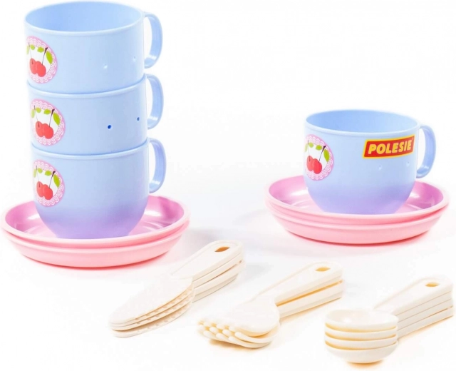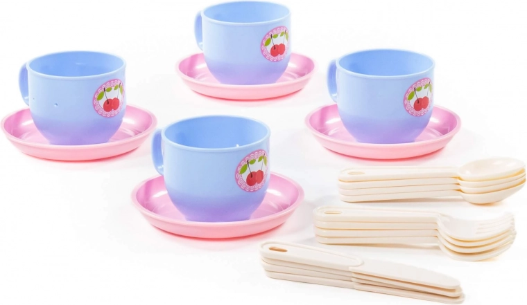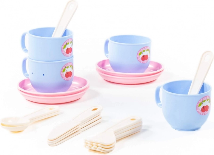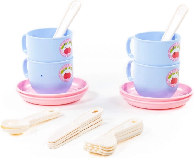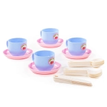 A készletben 4 csészét csészealjjal és evőeszközöket talál. Minden mosható, és könnyen tisztítható.