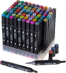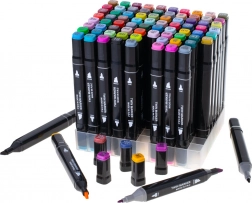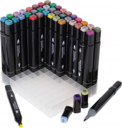 A széles, ferde hegy nagy felületeket színez, a finom hegy pontos vonalakat és részleteket rajzol. Egyetlen marker mindkét feladatot lefedi.