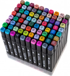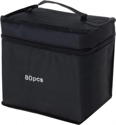 Minden kéznél van: a kompakt, cipzáras tok ideális utazáshoz, a stabil tartó pedig áttekinthetően, árnyalatok szerint rendezetten tartja a filceket.