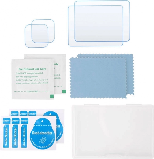 A készlet tartalmaz edzett üveget az elülső és hátsó kijelzőhöz, szerelési tartozékokat és egy tisztítókendőt.