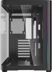 Kiváló dizájn: A görbített edzett üveg lehetővé teszi a teljes áttekintést a belső komponensekről, és esztétikailag látványos megjelenést kölcsönöz a számítógépnek. Az egy darabból álló üveg eleganciát és modernséget visz a képbe.