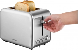 Az automatikus kiemelés funkció gondoskodik a kenyérszeletek egyenletes pirításáról, amelyek a befejezéskor automatikusan kiemelkednek és a készülék kikapcsol. Továbbá van egy praktikus morzsatálca a könnyű tisztítás és morzsa tárolás érdekében. A teljes biztonság érdekében magas kiemelési funkció és csúszásmentes lábak gondoskodnak a stabilitásról.