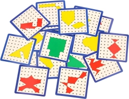A különböző nehézségű, kétoldalas mintakártyák segítenek a formák, színek, szimmetria és szögek felismerésében. Csak a megfelelő gumikat kell megfeszíteni, és követni a mintát.