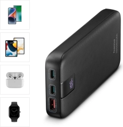 Kiemelkedően nagy teljesítményű powerbank 20000 mAh kapacitással, amely gyors töltést és a három eszköz egyidejű töltését is lehetővé teszi. Kompakt, könnyű és LED kijelzővel rendelkezik, amely mutatja a töltöttségi szintet.