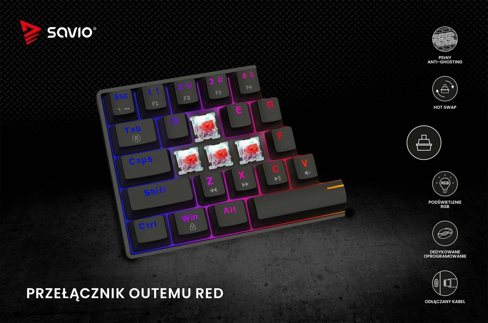 A Blackout X2 billentyűzet levehető USB-C kábellel van felszerelve, amely könnyebb szállítást és tárolást biztosít.