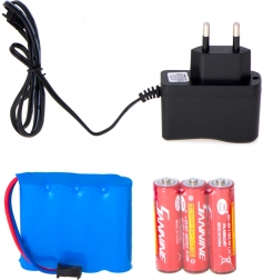 A csomag tartalmaz egy 4,8 V 700 mAh-s akkumulátort, hálózati töltőt és elemeket a távvezérlőhöz (3× AA). Csak kibontja és indulhat.