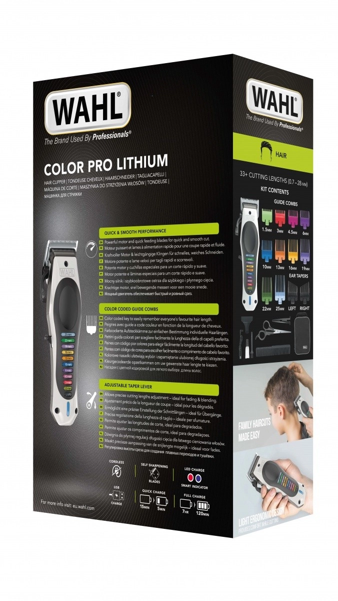 A Color Pro Lithium hajvágógép erős motorral és nagy sebességű pengékkel rendelkezik, amelyek gyors és sima vágásokat biztosítanak. Többé nem kell időt vesztegetnie a hajformázás során.
