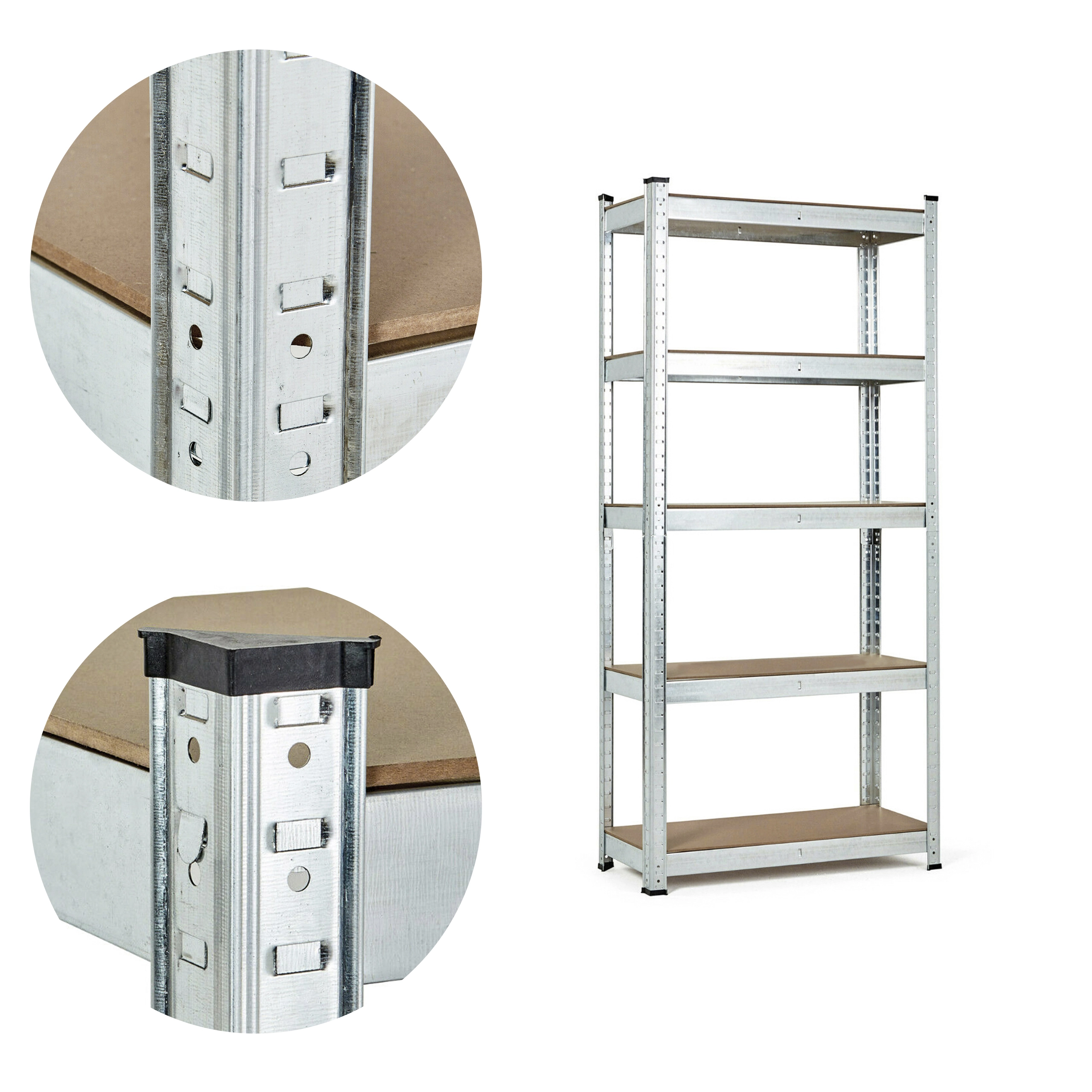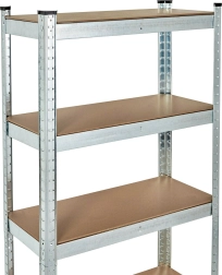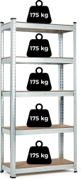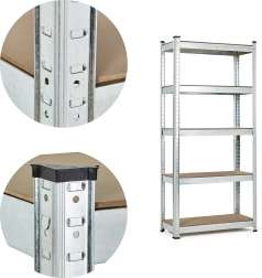 A galvanizált acélszerkezet megvédi a polcot a nedvességtől és a korróziótól, ideálissá téve akár magasabb páratartalmú környezetekben való használatra is. A "fogakat" nyílásokba helyező összeállítási rendszer biztosítja az egyszerű összeszerelést és magas stabilitást még nagy terhelés esetén is. A védő lábak megakadályozzák a padló sérülését.