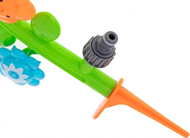 A szerelés maximálisan egyszerű: szúrd a tüskét a földbe, csatlakoztasd a kerti tömlőt szabványos gyorscsatlakozóval, és kész. A strapabíró műanyag kivitel több szezonon át bírja, a vidám színek pedig újra és újra játékra csábítanak.