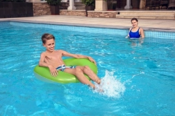 Az élénk szín kiváló láthatóságot biztosít a vízben, ami hozzájárul a biztonságosabb használathoz. Az úszógumi könnyű és egyszerűen hordozható, így a táskában szinte semennyi helyet sem foglal, és bárhová magával viheti – medencéhez, tóhoz vagy a tengerhez.