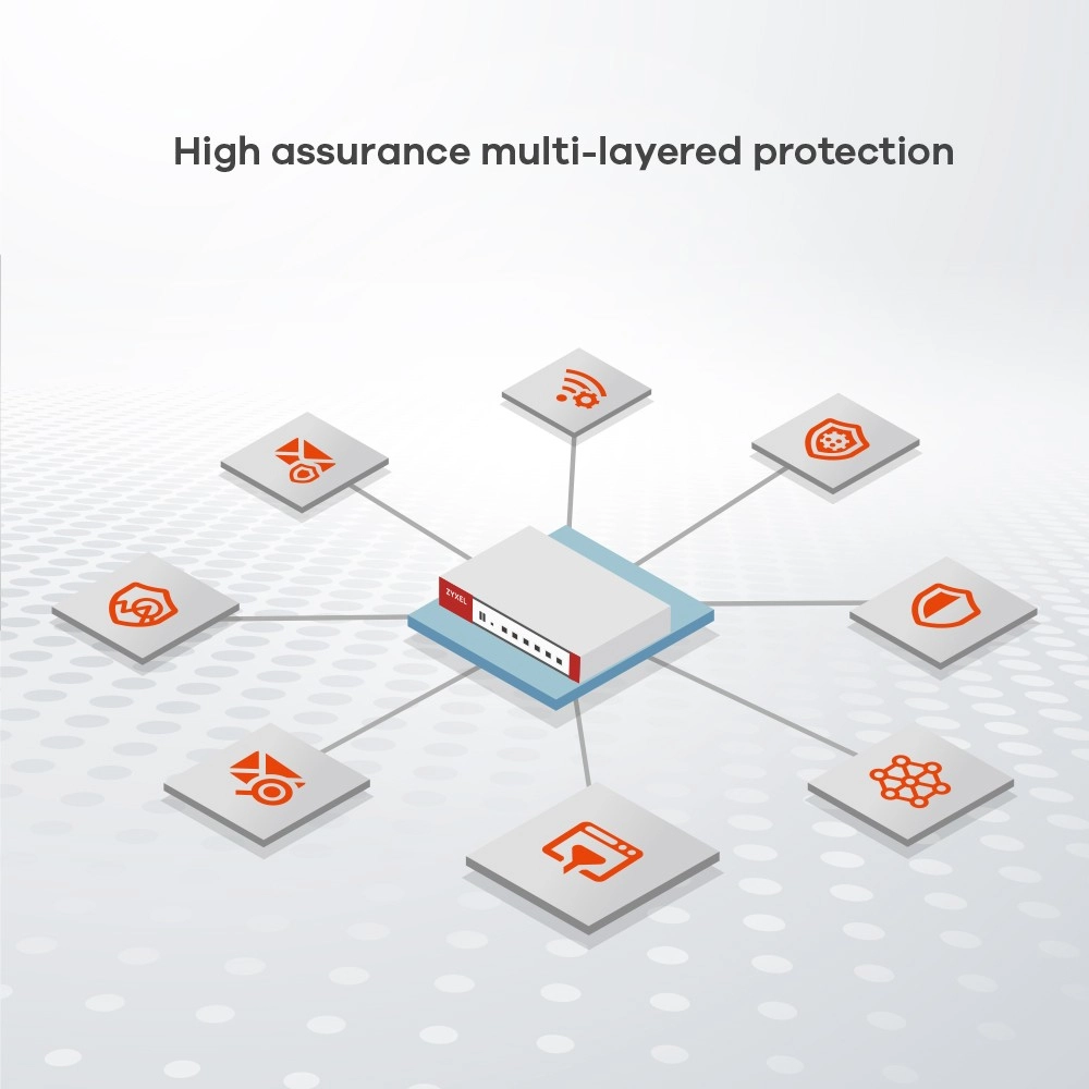 Integráció a Nebula Cloud Management-tel lehetővé teszi a Zero-Trust Network biztonsági politika részletes beállítását olyan szervezetek számára, amelyek hozzáférés-hitelesítés és biztonságos Wi-Fi opciókat igényelnek. Fejlett fenyegetés intelligencia integrálva vezető cégek elemzésével, növeli a detektálás pontosságát széles körű malware adatbázis révén.
