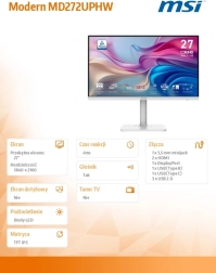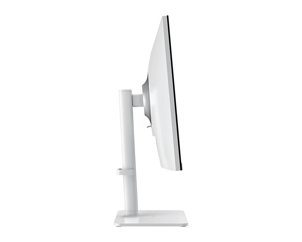 Modern LED monitor 27 hüvelykes átmérővel, UHD felbontással biztosítja az éles és tiszta képet. Az elegáns fehér design ideális kiegészítője minden modern munkahelyi térnek.