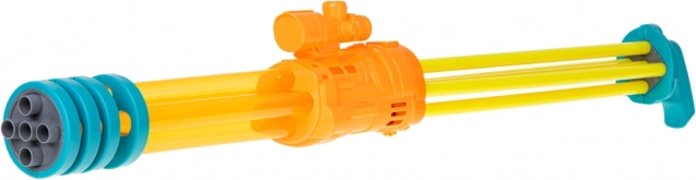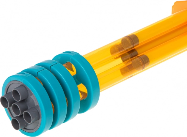 Minőségi műanyagból készült, ez a pisztoly könnyű, mégis tartós. Az élénk színek, mint a sárga, narancssárga és kék, minden gyermek figyelmét felkeltik.