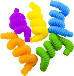 Ez a 10 darabos szenzorikus cső készlet tapintási és hallási stimuláció biztosítására készült. A csövek 7 különböző színben elérhetők - sárga, rózsaszín, lila, narancssárga, kék, tengerészkék és zöld, ideális oktatójátékokhoz, mint betűtanulás, számolás és mások. Összekapcsolhatóságuk révén különféle formák, például körök és négyzetek alkothatók, amelyek támogatják a gyermeki kreativitást és órákig tartó szórakozást biztosítanak. Felnőttek számára remek stresszoldó eszközként szolgálnak.