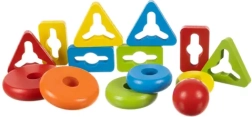 Ismerd meg a három alapformát: kör, háromszög és téglalap. A játék tartalmaz egy alapot és számos könnyen mozgatható és összeilleszthető darabot.