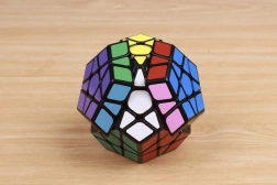 A cél a színek egyezése minden oldalon. Az ötszögletű oldalak három mozgatható részt tartalmaznak, fix középponttal.