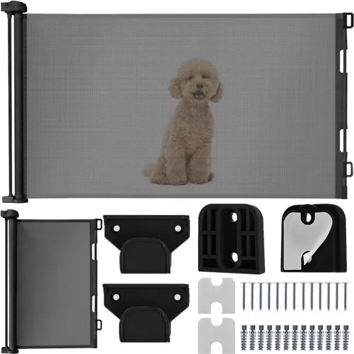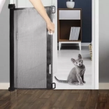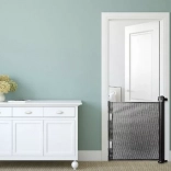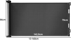 Praktikus, kihúzható biztonsági kapu hálóval, amely megóvja a gyerekeket és a háziállatokat az otthon veszélyes zónáitól. Könnyen kezelhető, helytakarékos, és fekete kivitelének köszönhetően bármelyik enteriőrbe illik. Akár 160 cm-ig kihúzható, 86 cm magas, strapabíró PVC hálóval és masszív fém- és műanyag alkatrészekkel megbízható akadályt képez ajtóknál, folyosókon és lépcsőknél.