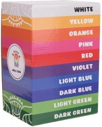 Tíz külön csomag különböző színekben az egyszerű adagoláshoz és csoportos megosztáshoz.