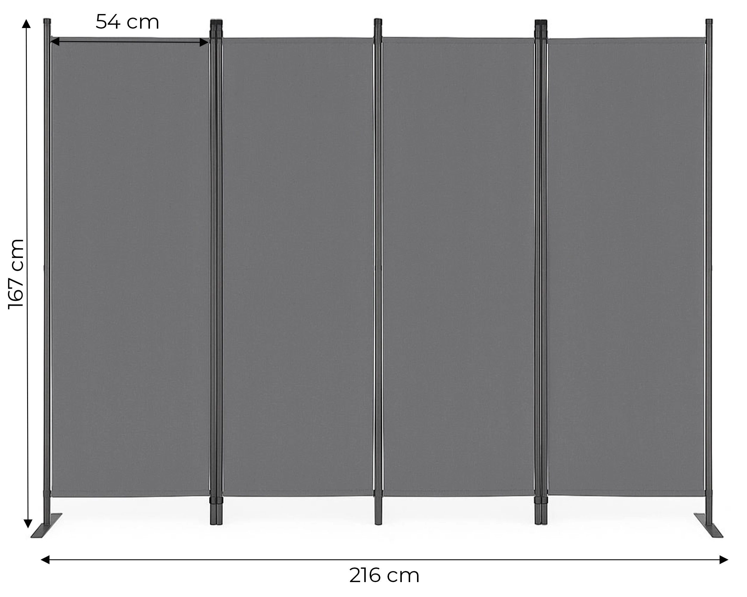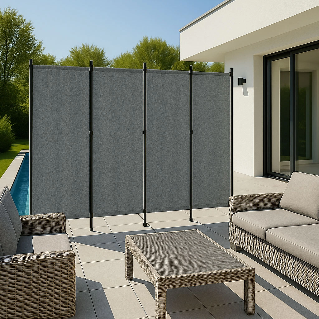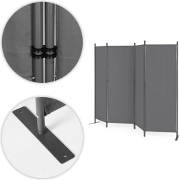Az univerzális összecsukható MultiGarden kerti paraván ideális megoldás a kültéri területek védelmére és dekorálására. Tökéletes kertekhez, teraszokhoz vagy erkélyekhez, magánéletet és szél elleni védelmet biztosítva, miközben térválasztóként is szolgál. A 160 g/m² poliészter anyagnak köszönhetően a paraván UV sugárzás és eső ellenálló. A könnyű és összecsukható szerkezet révén könnyen mozgatható és odahelyezhető, ahol szükség van rá. Az elegáns szürke szín stílust kölcsönöz, amivel a paraván praktikus és esztétikus is.