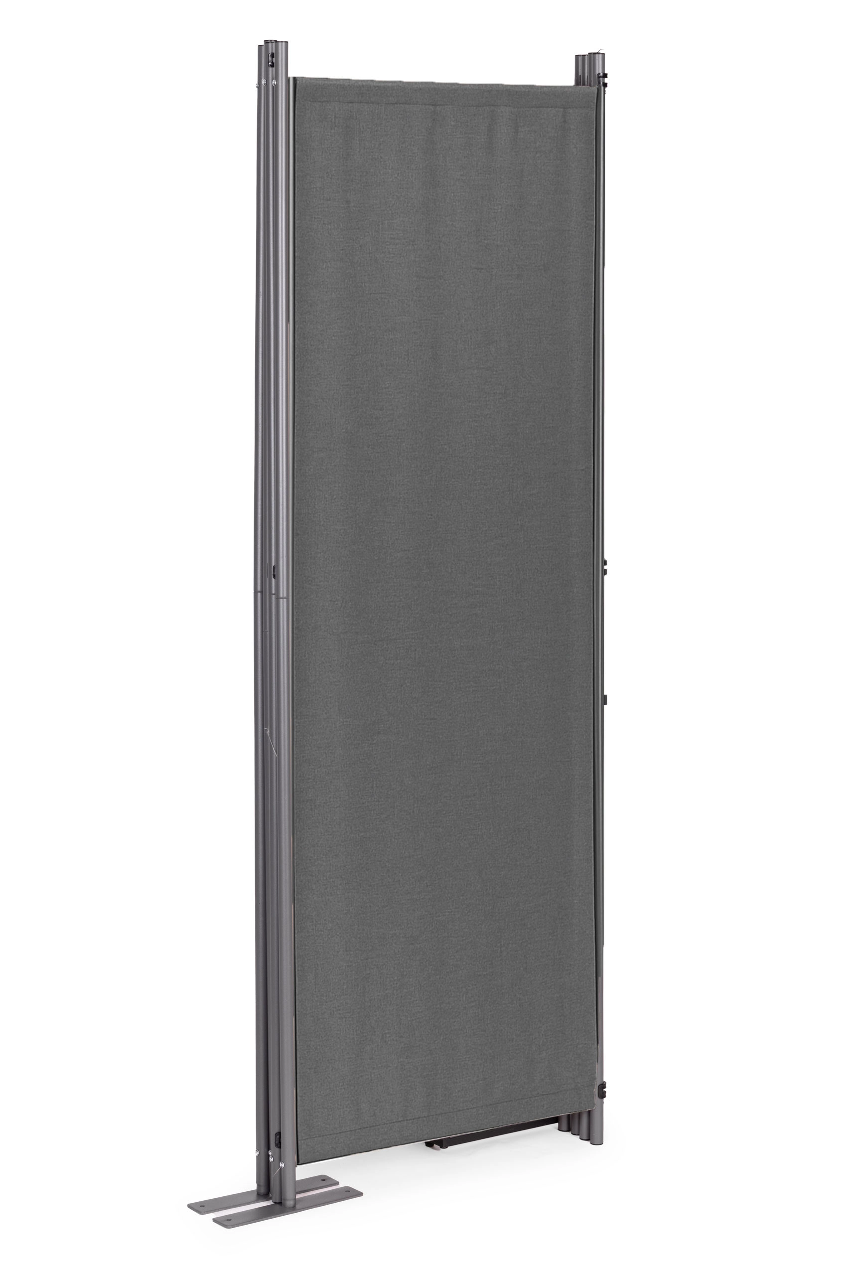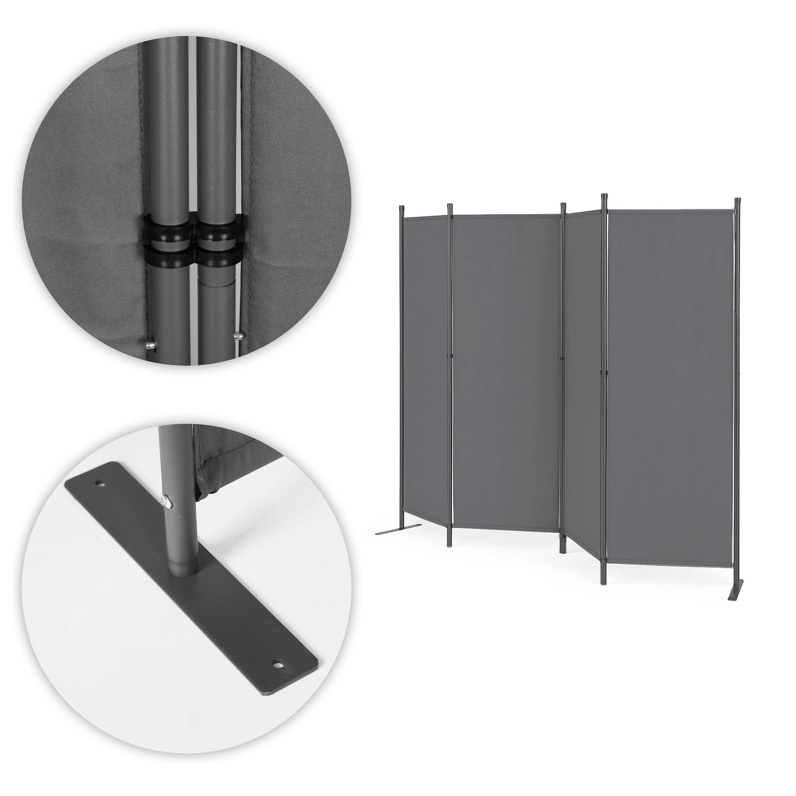 Robusztus panelkapcsok segítik a paraván össze- és szétszerelését, jelentősen megkönnyítve a mindennapi használatot. A stabil fém alap praktikus rögzítőnyílásokkal kiváló támogatást nyújt az egész szerkezet számára, megakadályozva a felborulást egyenetlen terepen is.