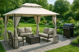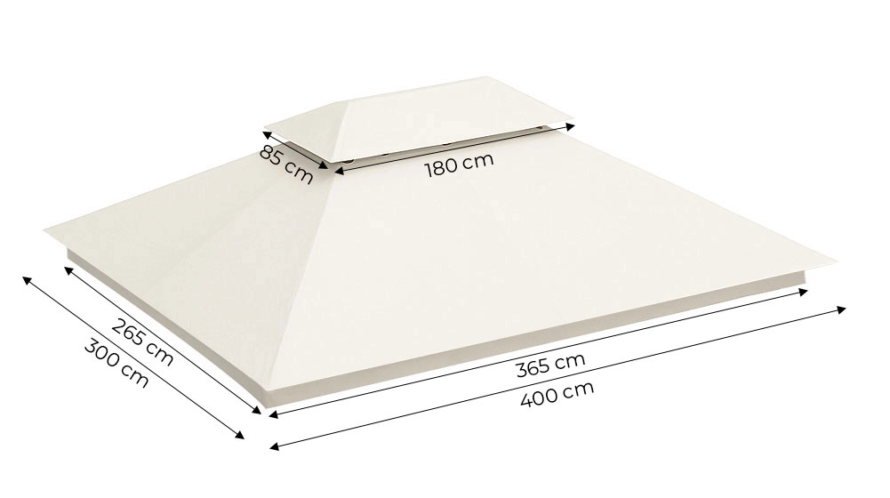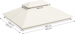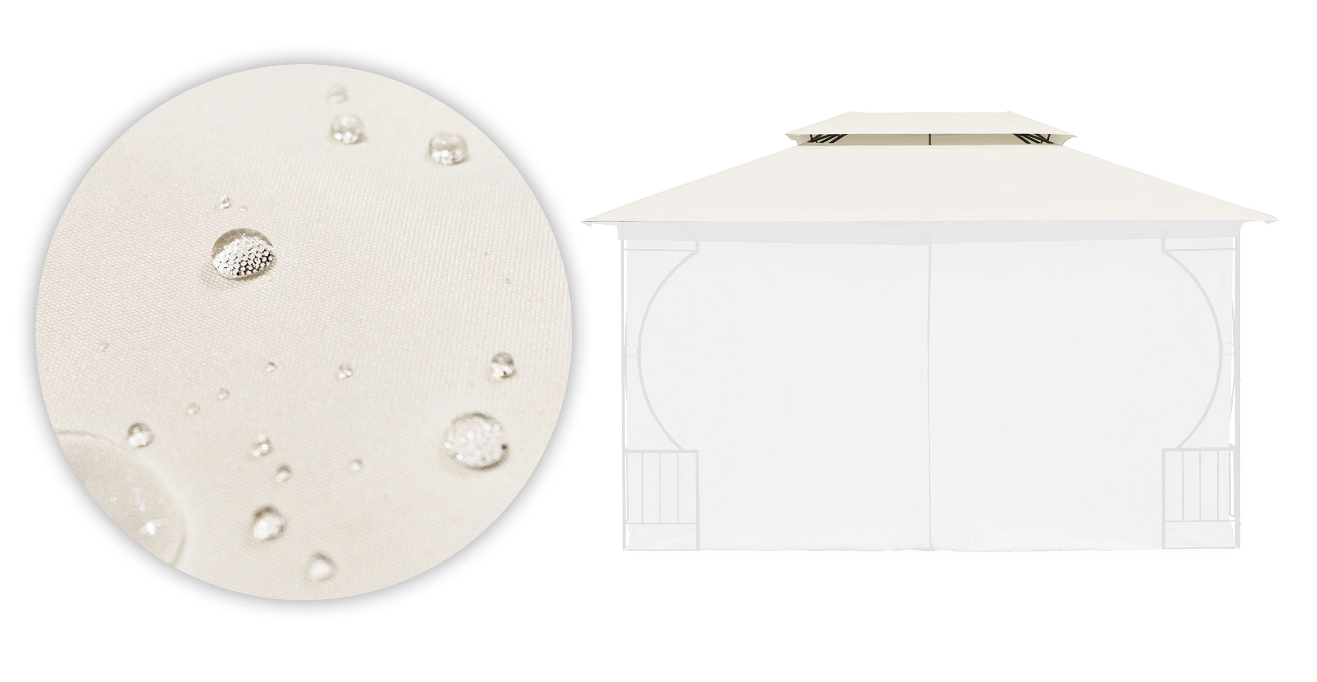Pót-tető a 3x4 m kerti pavilonjához, amely lenyűgöző védelmet nyújt a 180 g/m² vízálló és UV-álló poliészter szövettel. Kitűnő kerti rendezvényekhez, grillezéshez vagy pihenő délutánokra, meghosszabbítja a kerti szezonját tavasztól őszig!