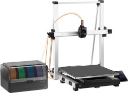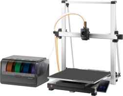 Az Anycubic Kobra Max Combo verzió több színből való nyomtatást kínál az ACE Pro fejlett rendszerrel együtt, amely automatikusan kezeli és cseréli a szálakat. Ez a rendszer optimális feltételeket biztosít a nyomtatáshoz a beépített szárító és tároló megoldás által. Lehetővé teszi egyszerű, többszínű projektek készítését kézi anyagcsere nélkül.