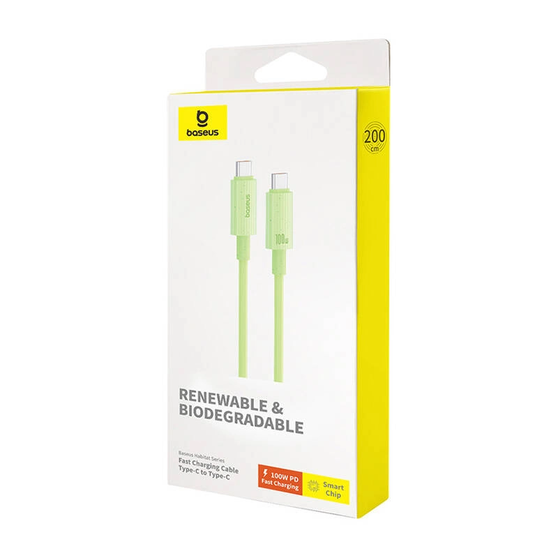 Biológiailag lebomló anyagból készült, a kábel 42%-a kukoricakeményítőből készült, ami csökkenti az ökológiai lábnyomát. Tartóssági teszteken ment keresztül, amelyek biztosítják ellenállását a hajlítás és más károk ellen.