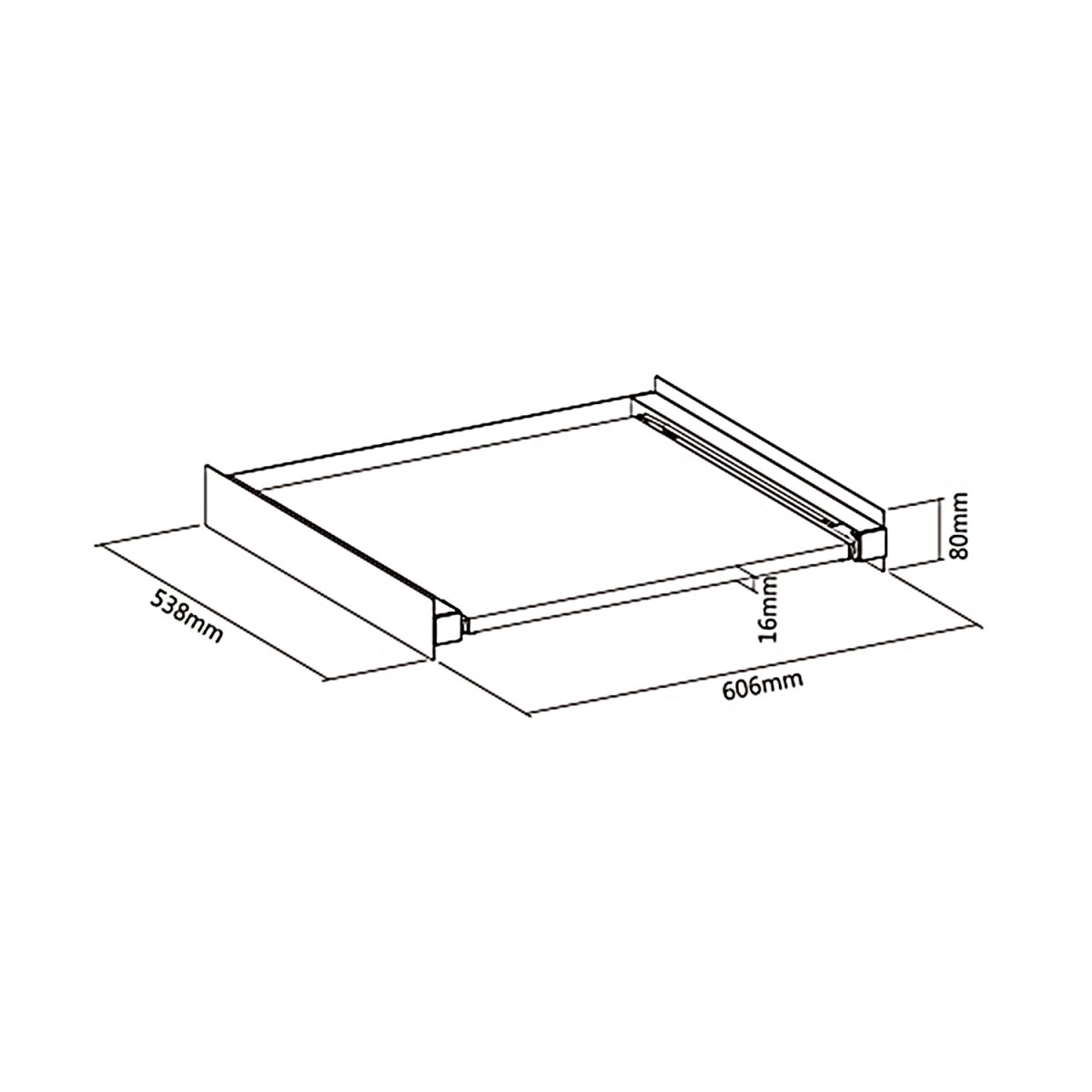 Univerzális csatlakozó készlet mosógéphez és szárítógéphez 60x53 cm méretben. Kompatibilis a legtöbb márkával, mint például Bosch, LG, Samsung, AEG, Siemens, Beko és mások. Stabil alumínium konstrukció akár 60 kg teherbírással.