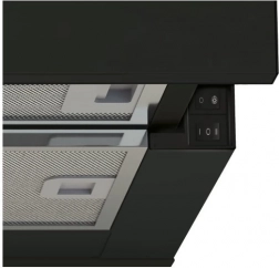 Az elszívó modern fekete és szürke kivitelezése tökéletesen illeszkedik bármely konyhába.