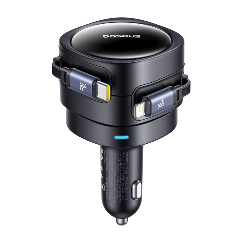 A Baseus autós töltő erőteljes és biztonságos töltést biztosít a két beépített kábelnek köszönhetően, az USB-C és a Lightning, amelyek mindegyike akár 30W-t képes kezelni. Kompatibilis a 12-24 V feszültséggel, így tökéletes személygépkocsikhoz, SUV-khez és teherautókhoz.