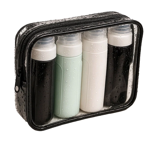 Bemutatjuk a Trizand praktikus utazó kozmetikai szettjét, amely tökéletes minden utazási igényedhez. A szett négy szilikonos üvegcséből és egy átlátszó, vízálló táskából áll, amely megfelel a TSA/IATA szabványoknak a kézipoggyászban szállítható folyadékok esetében. Nincs többé gond a bőröndben kiömlő samponnal!
