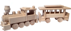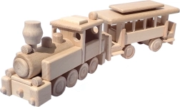 A vonat tömör bükkfából készült, felülete kizárólag viaszolt és polírozott. Megőrzi a fa autentikus erezetét, kíméletes és biztonságos a gyerekek kezének.
