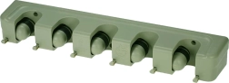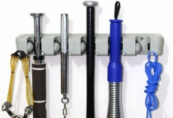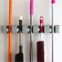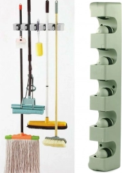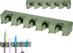 A fali tartó mopok és seprűk számára ideális segítő minden háztartás vagy garázs számára. Öt állítható nyílással és hat kis kampóval elegendő helyet biztosít kefék, mopok és más tisztítóeszközök tárolására. Tartós műanyagból készült, erősen fogja a különböző átmérőjű rudakat, így széles körben alkalmazható otthoni és kerti eszközök tárolására.