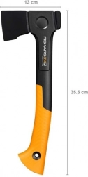 Univerzális balta Fiskars X14 kompakt eszköz, amelyet az emberi test ergonómiájának maximális kihasználására terveztek - jól kiegyensúlyozott, kényelmes és ideális egy kézzel történő használatra.