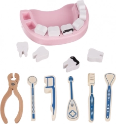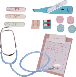 A készlet különböző eszközöket tartalmaz, beleértve a sztetoszkópot, hőmérőt és fogászati modellt, ami teljes élményt nyújt az orvosos játékhoz.