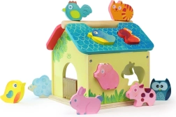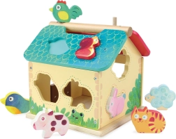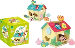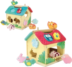 Ez a színes bedobós házikó kiválóan fejleszti a kulcskészségeket: a gyerekek gyakorolják a szem–kéz koordinációt, a logikus gondolkodást és a türelmet. A készlet 1 házikót és 10 fa állatfigurát tartalmaz – tökéletes kombináció az értelmes és örömteli játékhoz.