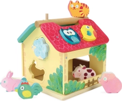 A VILAC fa farmja játékos bedobást kínál: az állatfigurákat a házikó oldalain és tetején lévő, formájuknak megfelelő nyílásokba lehet illeszteni. A praktikus fogantyúnak köszönhetően a játék könnyen hordozható, otthoni és utazás közbeni játékra egyaránt ideális. A strapabíró kivitel és a sima élek biztonságot és hosszú élettartamot biztosítanak.