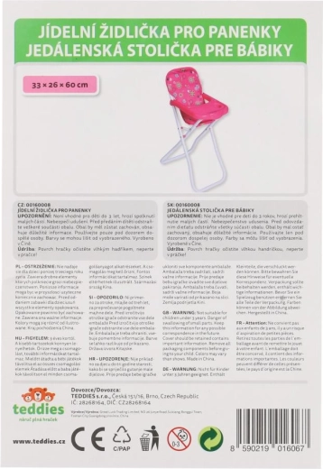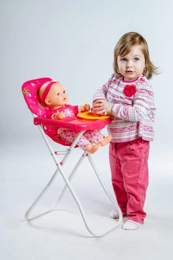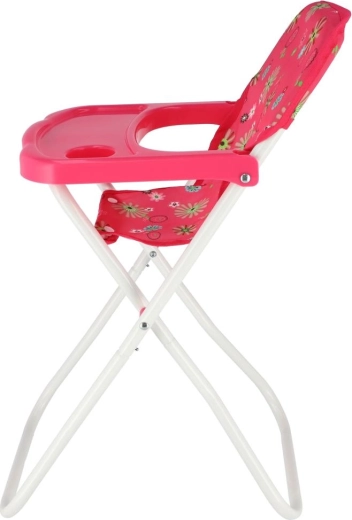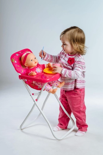 Ez az etetőszék babáknak minden kis gondoskodót örömmel tölt el. Kényelmes ülőfelületet kínál virágmintás huzattal, praktikus műanyag tálcát etetéshez és könnyű, mégis stabil fém szerkezetet. Helytakarékos kivitelének köszönhetően könnyen hordozható és tárolható.